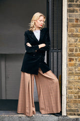 Taking inspiration from 1920s suit trousers, these dapper tailored pants are wide-legged and feature a deep front pleat that expands for comfort, without compromising on cut. The nylon waistband ensures the bump is protected and supported.