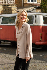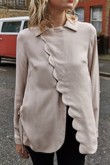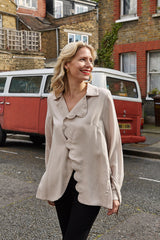 Tailored and adaptable, this scalloped edge shirt is a modern classic. The swing back and additional fabric built into the side panels accommodates a changing frame without compromising style or comfort.